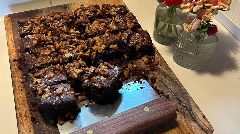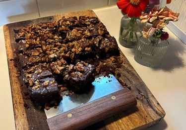 Double Chocolate walnut sourdough brownies. Keep an eye on our weekly menu to not miss these!